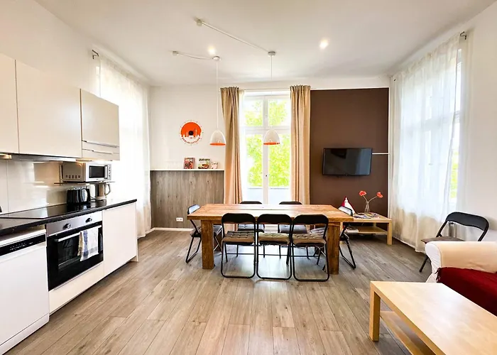 Dieses Apartment liegt im Stadtteil Pankow von Berlin in 650 Meter Entfernung zum Schloss Schönhausen. Die Gedenkstätte Berliner Mauer ist 6 km weit weg von den 2-Zimmer-Apartments gelegen. Friedenskirche liegt weniger als 6 Gehminuten von den Unterkünften entfernt.